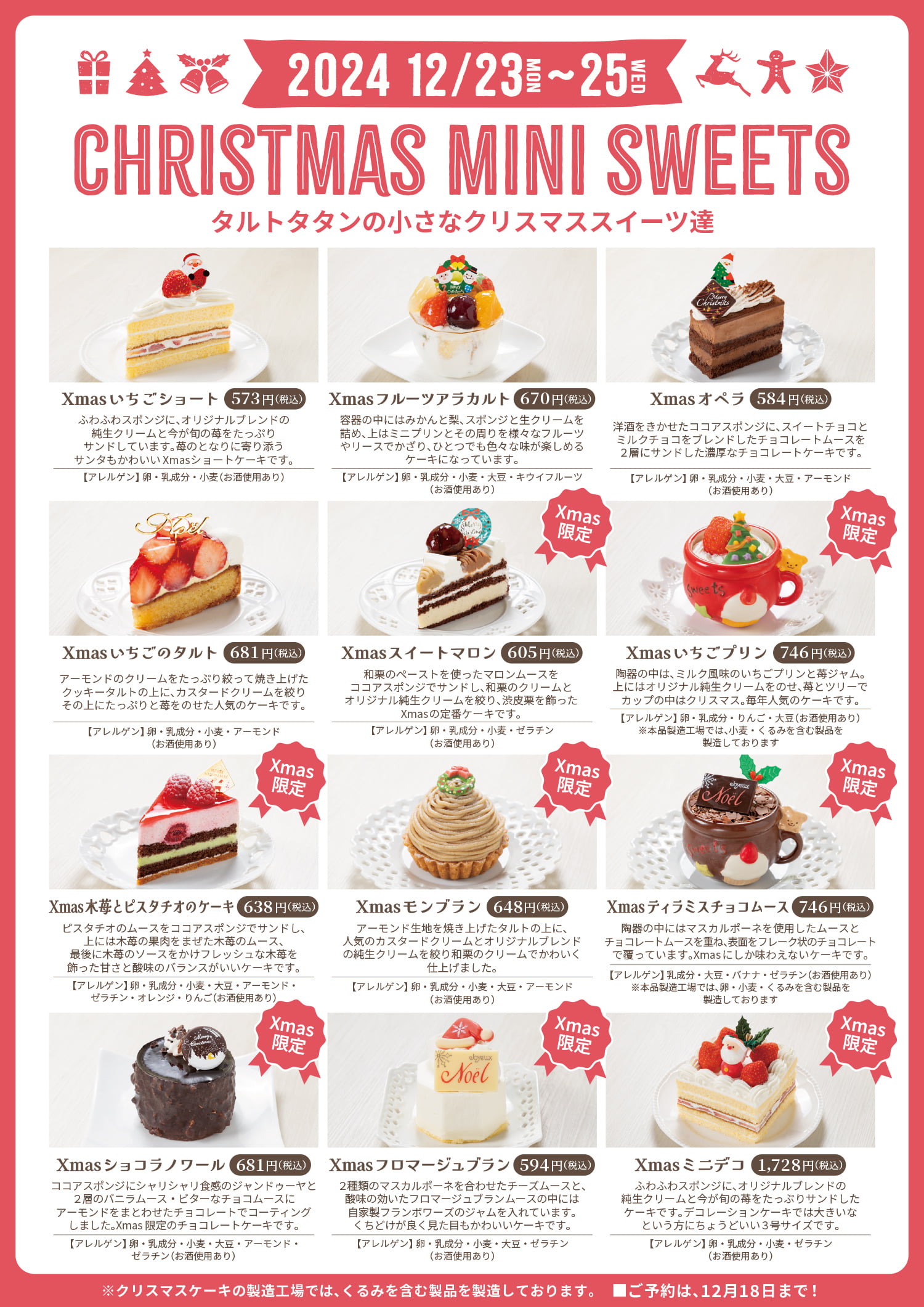 • 直営店インフォメーション:12月のケーキ&イベントのご案内