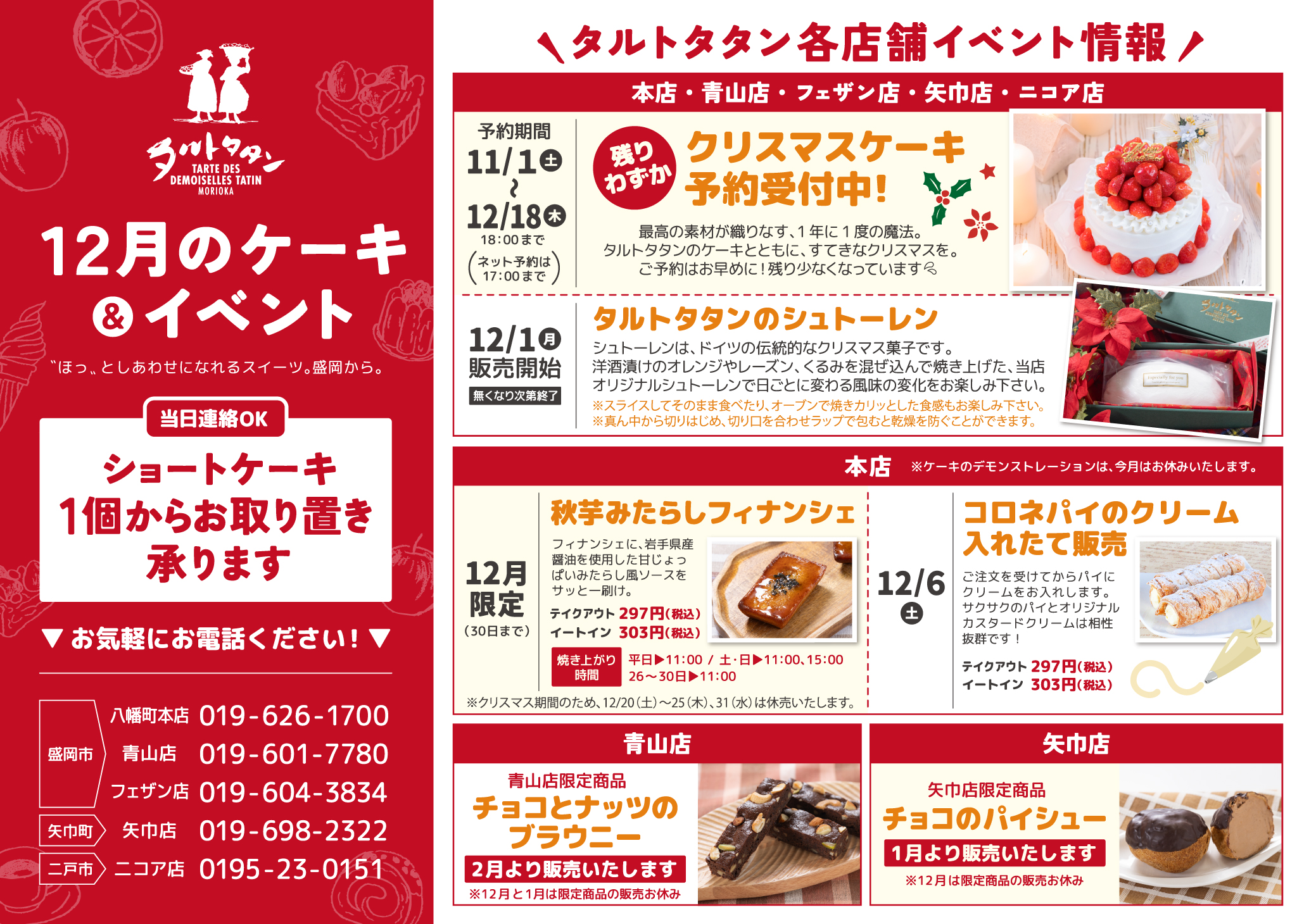 • 直営店インフォメーション:12月のケーキ&イベントのご案内