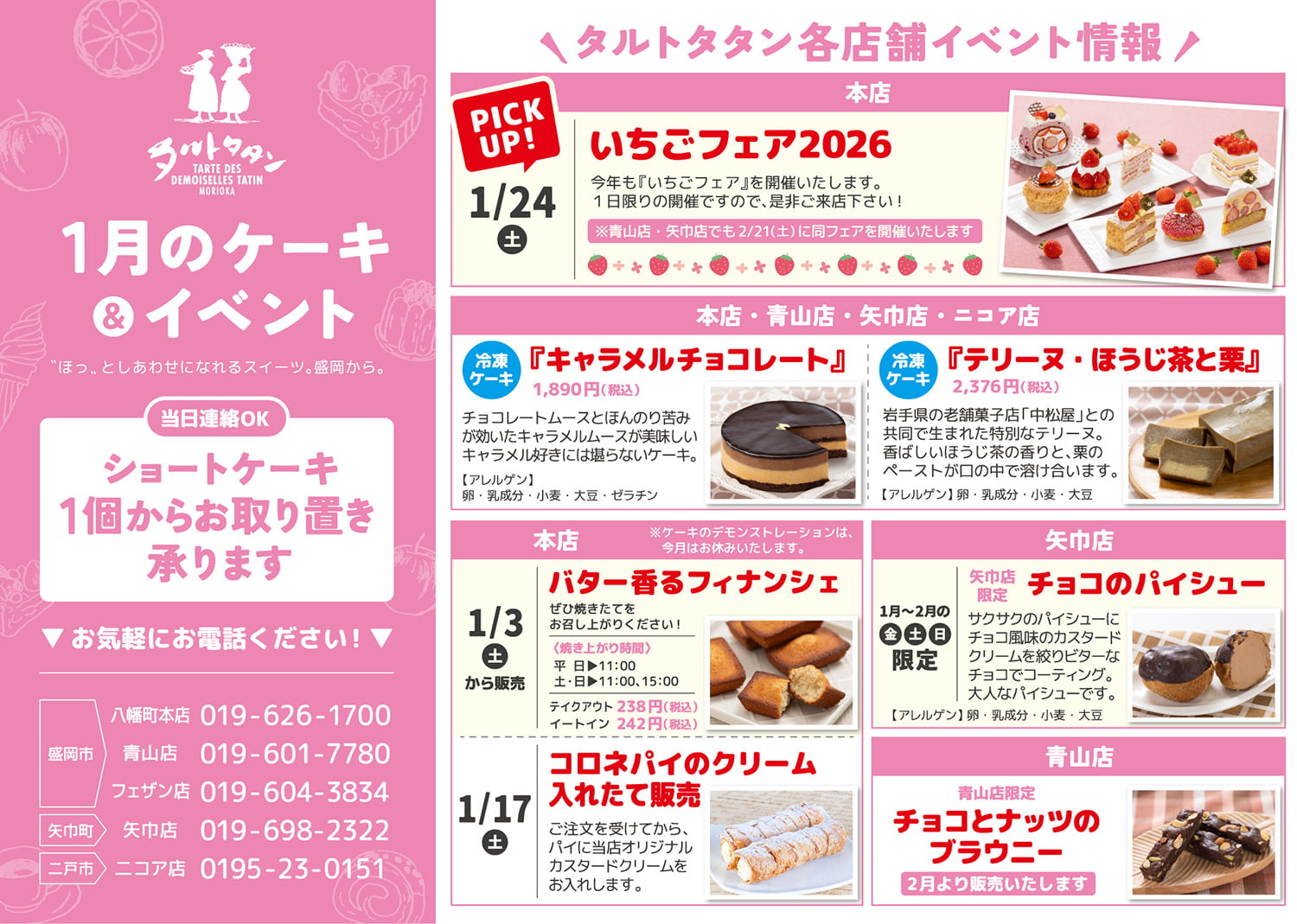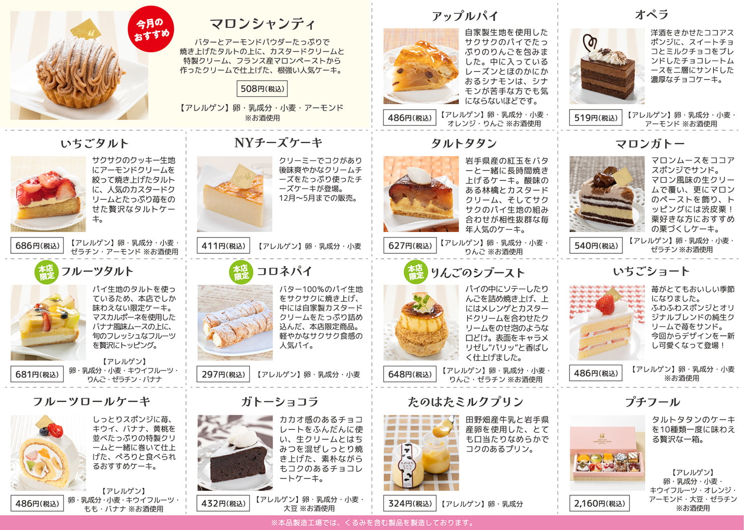 タルトタタンの商品ラインナップ