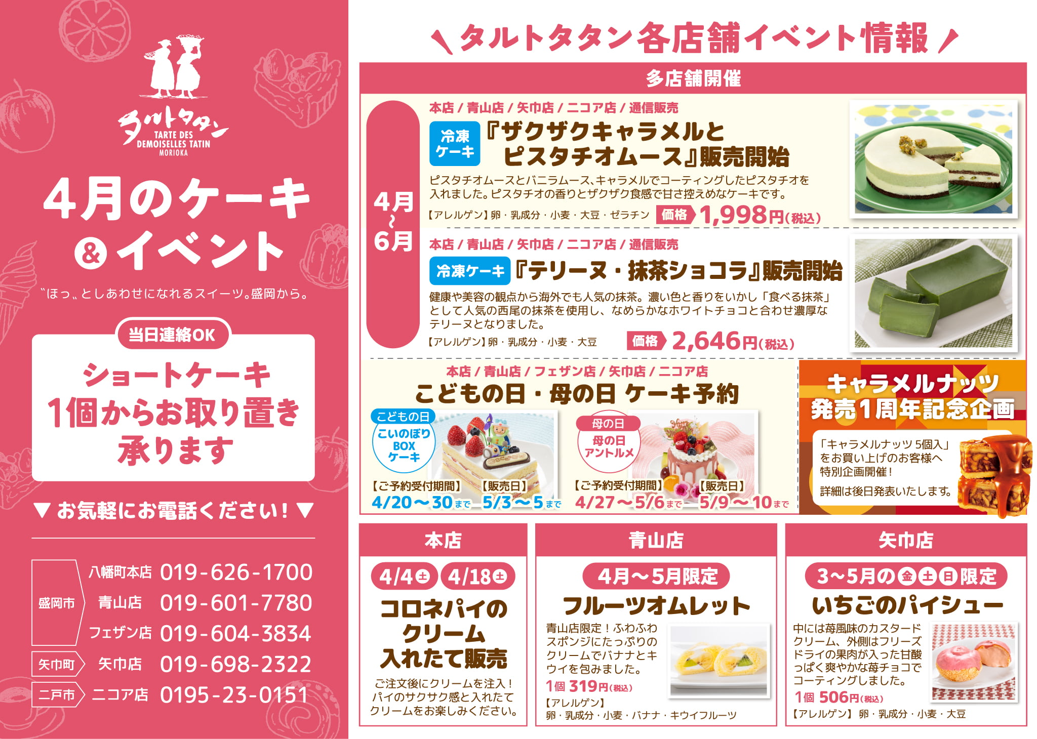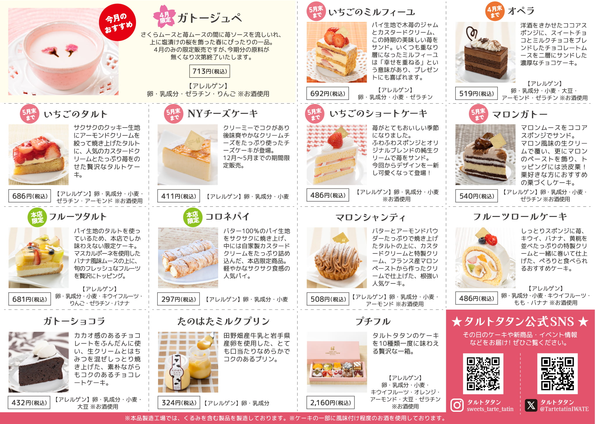 タルトタタンの商品ラインナップ